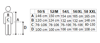 ISO 14877:2002 Protective clothing for abrasive blasting operations using granular abrasives and the harmonized standards: 93/68/EEC, 93/95/EEC, 96/58/EEC.